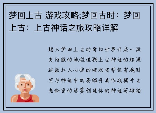 踏入梦回上古的奇幻世界,开启一段史诗般的旅程,追溯上古神话的起源。这款扣人心弦的游戏将带你穿越时空,与神话中的英雄并肩作战,揭开古老秘密的迷雾。 创建你的神话英雄 踏上征程之前,精心塑造你的神话英雄。...